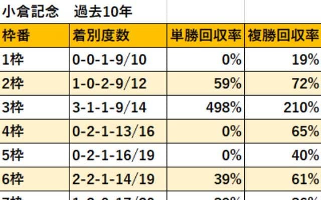 【小倉記念 枠順データ分析】3枠の単勝回収率が498%! 一方で同じ内の1枠は不振が続く | その他競技