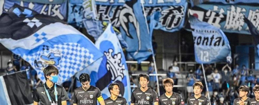 川崎フロンターレの選手と等々力競技場 撮影:中地拓也