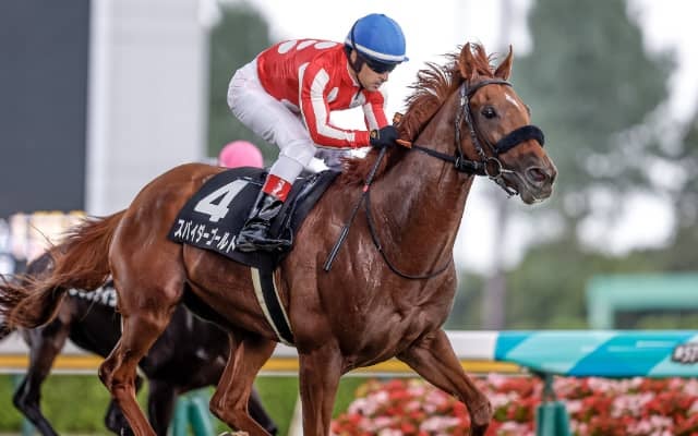 競走中に鼻出血を発症しながらも1着となったスパイダーゴールド(撮影:下野雄規)
