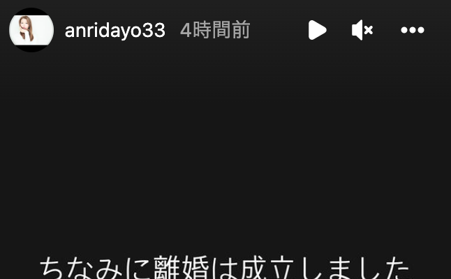 黒の背景に白字で「ちなみに離婚は成立しました。せめて彼の誕生日が終わるまで仲直り夫婦でいる事、我慢していました」と綴った。