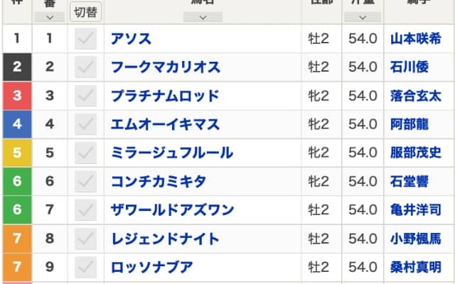 17日門別4R・JRA認定フレッシュチャレンジ競走の出馬表