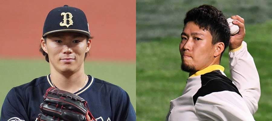 オリックス・山本由伸(左)とソフトバンク・千賀滉大【写真:荒川祐史、藤浦一都】