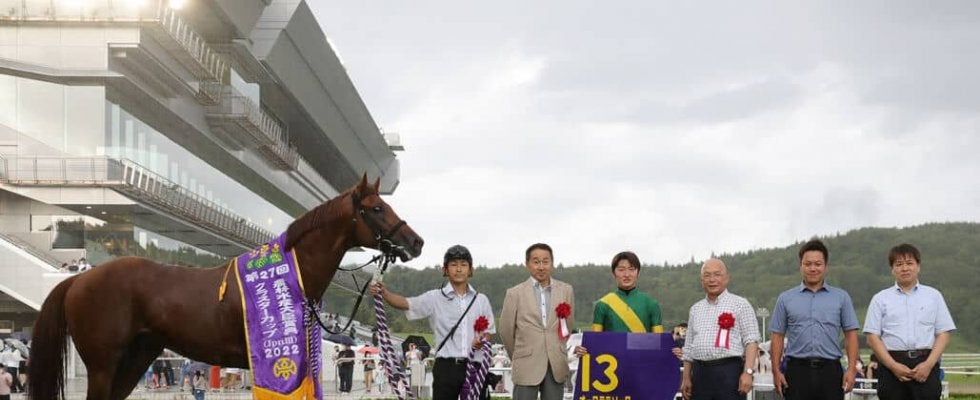 3番人気に支持された鮫島克駿騎乗、オーロラテソーロが嬉しい重賞初制覇を飾った。レースでは最内枠ダンシングプリンスが痛恨の出遅れ。オーロラテソーロは外からスムーズに先行して2番手の位置からしぶとく抜け出した。