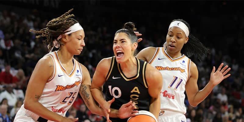 ラスベガス・エーシズ(同1位)は5点リードで迎えた第4クォーターに28得点を重ね、フェニックス・マーキュリー(同8位)を79-63で撃破。3x3アメリカ代表として「東京2020オリンピック競技大会」で金メダルを獲得したケルシー・プラムがチーム最多22得点をマークした。
