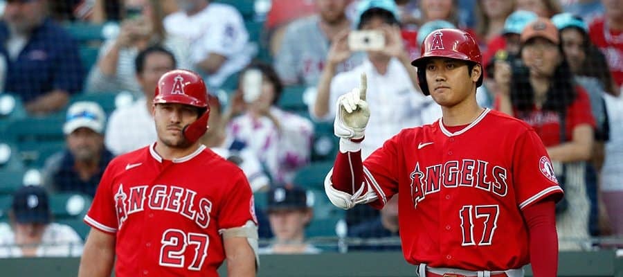 タイガース戦に出場したエンゼルス・大谷翔平(右)とマイク・トラウト【写真:Getty Images】