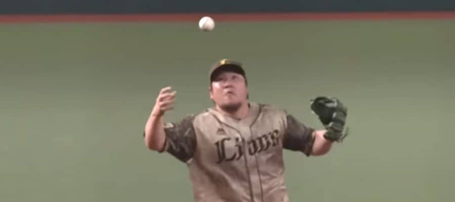 【実際の動画】「よくそこから投げられるな」西武・中村はお手玉したかと思われたボールをそのままつかみ豪快に送球