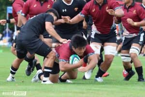 フィジカルの部分です。帝京大もフィジカルの強いチームだと思いますが、その中で相手をかわしてトライをしたシーンや、ゲインをきれたところが良かったと思います。