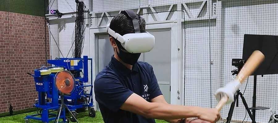 VRゴーグルを着けての素振りで打撃強化 画期的トレーニング施設に“潜入” | 野球