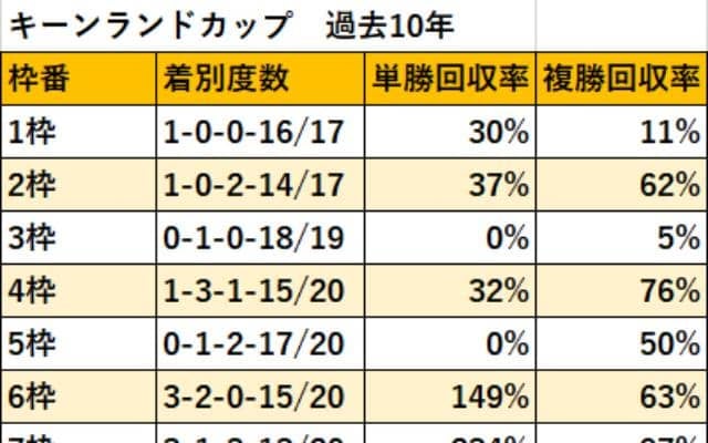 【キーンランドC 枠順データ分析】勝ち馬は外から! 3枠は驚愕の複勝回収率5% | その他競技