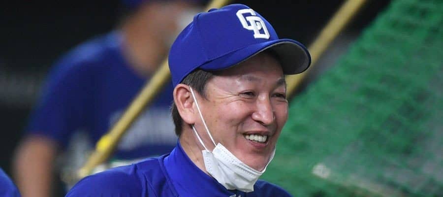 鋭い眼光でベンチからタクトを振る竜の指揮官。自らの誕生日だった一戦も、執念の采配を見せた。バンテリンドームでのヤクルト戦は、9回にサヨナラ勝ち。選手たちから、一番嬉しい白星をプレゼントしてもらった。