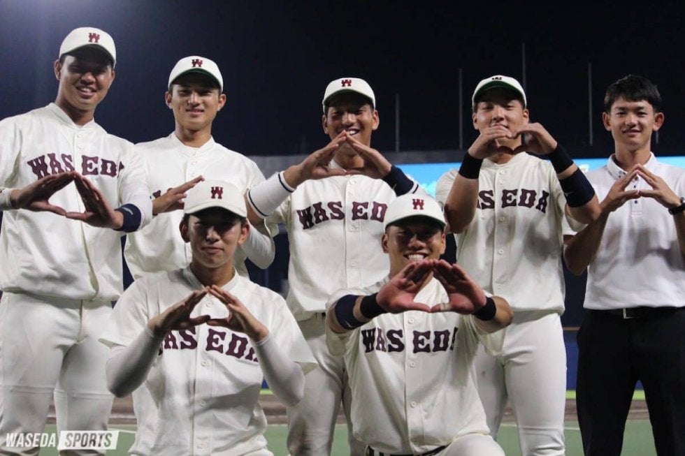 試合後マウンテンポーズをしてくれた早大ナイン