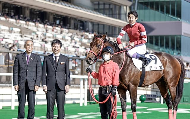 森厩舎所属で藤田氏が所有するデュガの口取り写真(撮影:下野雄規)