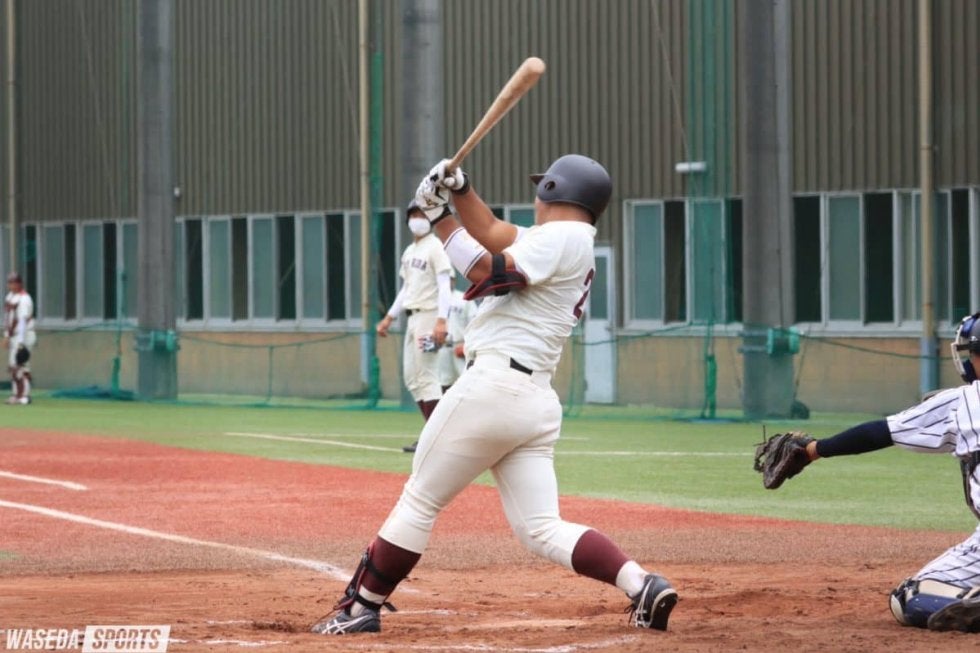 この日は清水大成(スポ3=大阪・履正社)が先発マウンドに上がるも、初回から四球やバッテリーエラーで相手に進塁を許し、内野ゴロの間に1点を先制される。清水大を援護したい打線は1点を追いかける3回、1死から中村将希(教3=佐賀・鳥栖)と中川卓也主将(スポ4=大阪桐蔭)の連続安打で一、二塁のチャンスを作ると、野村健太(スポ3=山梨学院)がライトへ2点適時二塁打を放ち、逆転に成功。しかし、その直後に清水大が2死からピンチを招き、2点本塁打などで3点を失って逆転を許してしまう。それでも、5回に1死一塁から中川卓に同点の右越え2点本塁打が飛び出し、試合を振り出しに戻した早大。継投した佐竹洋政(商4=東京・早大学院)が無失点投球を見せ、このまま主導権を握りたいところだったが、リリーフした雪山幹太(教4=東京・早実)が制球難に苦しむ投球となる。連続四球や被安打で進塁を許すと、迎えたピンチで味方のエラーも絡み、この回4失点。その後も終盤に奪われたリードを取り返せないまま、早大は4―8で黒星を喫した。