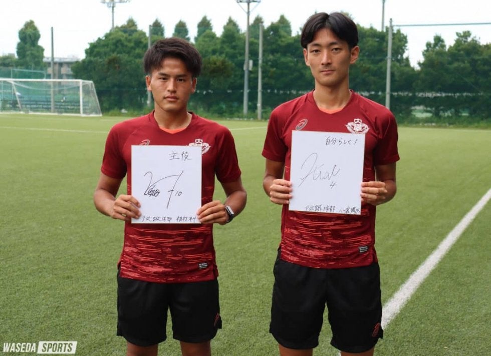 3年でJリーグ内定を決めた小倉陽太(スポ3=横浜FCユース)と植村洋斗(スポ3=神奈川・日大藤沢)。現在、2人が思うこととは。