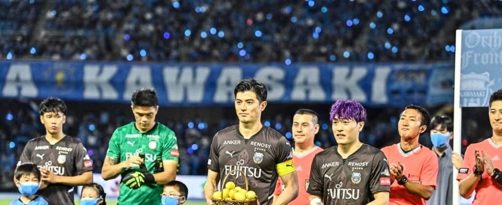 川崎フロンターレ主将・谷口彰悟は試合前にGENERATIONS 中務裕太からレモンを受け取った 撮影:中地拓也