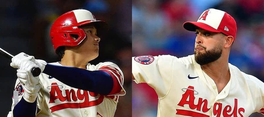 30号3ランを放ったエンゼルス・大谷翔平(左)とパトリック・サンドバル【写真:ロイター】