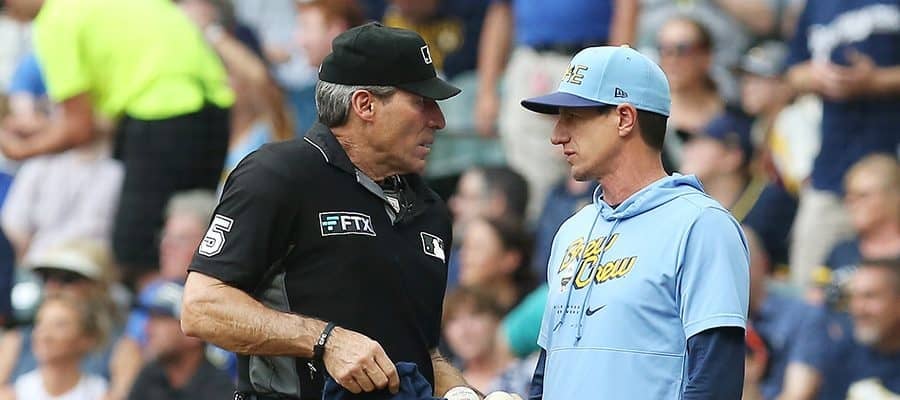 エンゼル・ヘルナンデス審判(左)とブルワーズのカウンセル監督【写真:Getty Images】