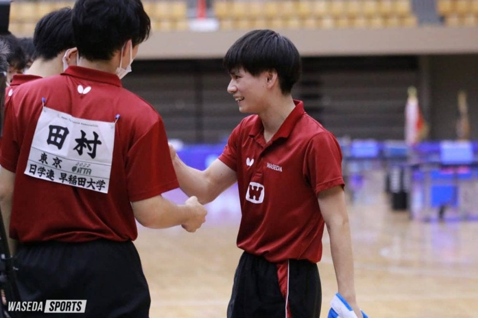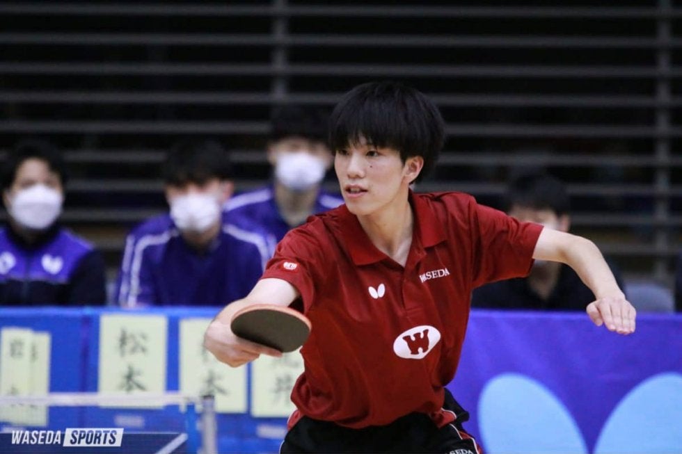 早大は前日の筑波大戦に続く勝利を目指し、第4試合目の駒大戦に挑んだ。1番手に登場した柏竹琉(スポ3=エリートアカデミー)は第1ゲームを相手に先取されて試合が始まる。第2ゲーム開始早々、柏は積極的な攻めの姿勢を崩さず得点を得る。最後はラリーを冷静に制し、このゲームを奪取した。しかしその後の流れは相手側にあり点差を引き離され、第3、4ゲームと続けて奪われ試合が終了する。続く松本累(商4=東京・早実)は壮絶な試合を繰り広げた。互いに2ゲームずつ獲得した後、最終ゲーム開始からペースをつかみ点差を広げていく。スピード感あるラリーを制するなど松本はペースを崩すことなく試合を進め、早大を勢いづける勝利をつかんだ。