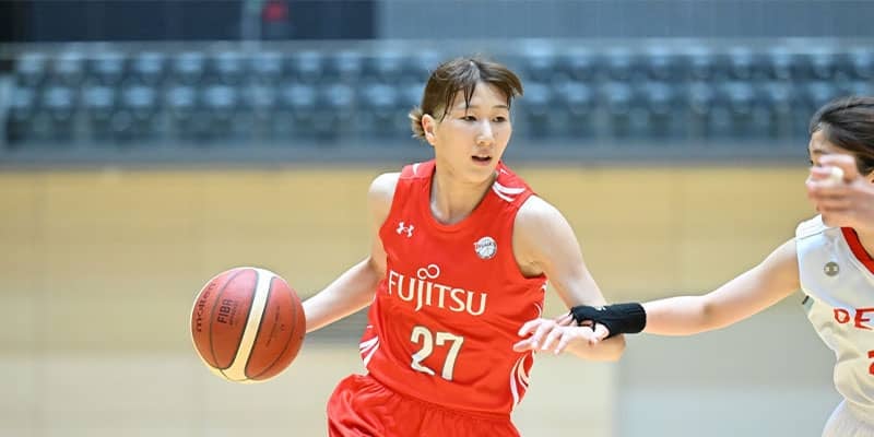 江良は、今シーズンよりアイシン・ウィングスから移籍で富士通に加入。もともと、聖カタリナ学園高校(愛媛県)時代から得点力の高さには定評があり、アイシンでも、昨シーズンは1試合平均11.5得点という数字を残した。
