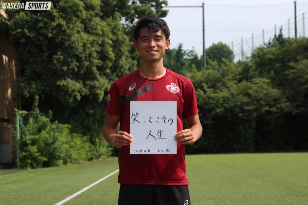 『笑ってこその人生』と色紙に書いてくださった柴田主将。早慶サッカー号の入稿中にはこの色紙を飾り、ア式取材担当たちの励みとなっていました!素敵なお言葉をありがとうございました!