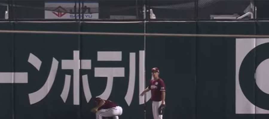 ソフトバンク・正木智也の打球がフェンスに挟まり楽天外野陣も困惑【画像:パーソル パ・リーグTV】