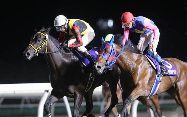 岩橋勇二騎手騎乗の2番人気スペシャルエックスが勝利(写真左、撮影:田中哲実)