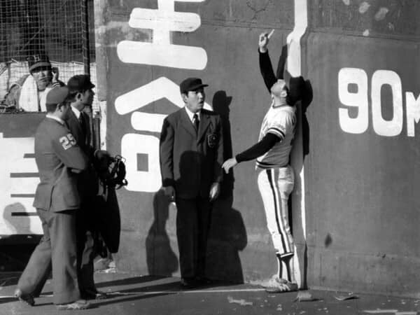 1978年の日本シリーズ第7戦、ホームランの判定を巡って抗議する阪急の上田監督(右)