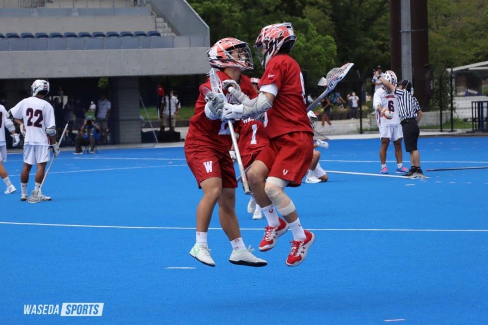 前半は両校による点の取り合いが展開された。早大は第1Q開始直後からボールの取りこぼしなどもあり、2失点で出はなをくじかれる。しかし早大はパス回しからAT八重倉良太(政経4=東京・早実)の得点で反撃ののろしを上げると、MF佐藤幹太(法4=埼玉・早大本庄)、MF井原優太(商4=東京・早大学院)の連続得点で逆転に成功する。第2Qになると、いきなり攻め込まれるが、G潟田泰成(商4=富山・片山学園)の好セーブでピンチをしのぐ。しかしその後、早大のオフェンスが防がれ、慶大にカウンターを決められ同点に追いつかれてしまう。両校のディフェンスが得点を許さない時間が続くが、MF井原が相手陣内に切り込み得点し早大が勝ち越す。しかしその余韻も束の間、慶大が再び同点に追いつき、4-4で試合を折り返す。