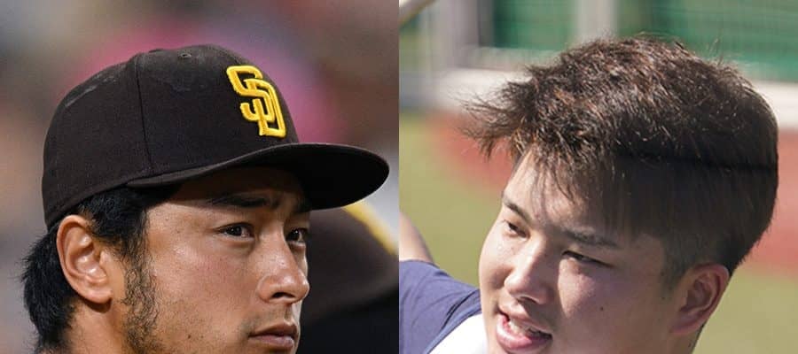パドレス・ダルビッシュ有(左)とヤクルト・村上宗隆【写真:ロイター、荒川祐史】