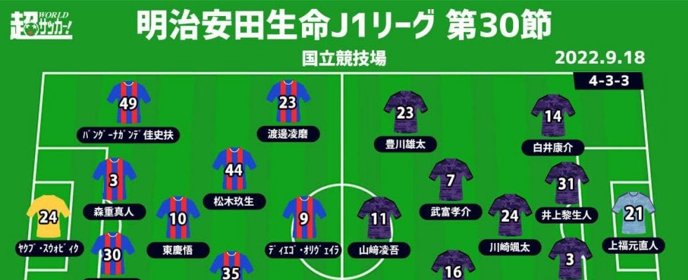 【明治安田生命J1リーグ第30節】 2022年9月18日(日) 19:00キックオフ FC東京(9位/40pt) vs …