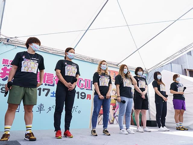「ガールズグランプリのチャンピオンも、応援してくださる方のおかげで、2回も獲らせていただきました。癌から復帰したのも、応援してくれる方がいるから戻ろうと思いましたし、苦しい人がいたら助けたいと思ったからなんです。皆様に支えられて、10周年が迎えられて、しかも、このレースを走ることができる。本当に幸せだと思います。一生懸命に走るので、ぜひ応援をよろしくお願いします」