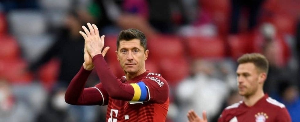 バルセロナに所属するポーランド代表FWロベルト・レバンドフスキがワールドカップでウクライナカラーのキャプテンマークを着…