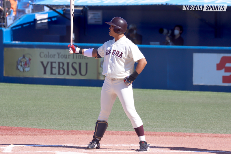 打撃陣は本調子とは言えないが、昨季に比べてつながりが出ている。法大戦では2試合を通じて下位打線がチャンスを作り、上位で返すという得点シーンが多く見られたように、好調の印出太一(スポ2=愛知・中京大中京)や山県秀(商2=東京・早大学院)ら下位打線のチャンスメイクが重要になるだろう。そうした中、ドラフト1位候補の主砲・蛭間拓哉副将(スポ4=埼玉・浦和学院)が苦しんでいる。7打数で安打は0、法大1回戦では3打席連続三振を喫するなど不調に陥っている。チームの流れを変える1発があるだけに、眠れる主砲の復活は明大撃破、そして賜杯奪還には必要不可欠だ。