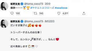 🌈板野友美、Twitterに祝福殺到❣️「優勝ーーー #ヤクルトスワローズ #swallows」