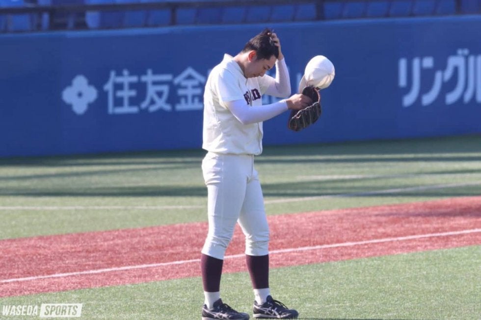 開幕節となった法大戦で2連勝を飾った早大。この日は東京六大学春季リーグ戦の王者・明大との1回戦に臨んだ。4季ぶりのリーグ戦制覇へ、先勝して勢いに乗りたい早大だったが、相手先発・村田賢一(3年)の前に打線がつながらない。わずか93球で完封され、今季初黒星。明大からの勝ち点奪取に向けて後がなくなった。