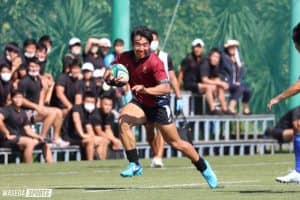 強い日差しが照りつける東海大グラウンド。早大Bは春の雪辱を果たすべく、東海大Bとの戦いに挑んだ。試合開始直後、早大Bが先制トライを決め、終始優位なプレーを繰り広げる。春に力負けしたセットプレーでも相手に引けを取らない強さを発揮し、リードを保って21-5で前半を折り返した。後半には相手の攻撃で何度かピンチの場面に出くわすが、その攻撃に勝る好プレーを連発し、47-24で報復を果たした。