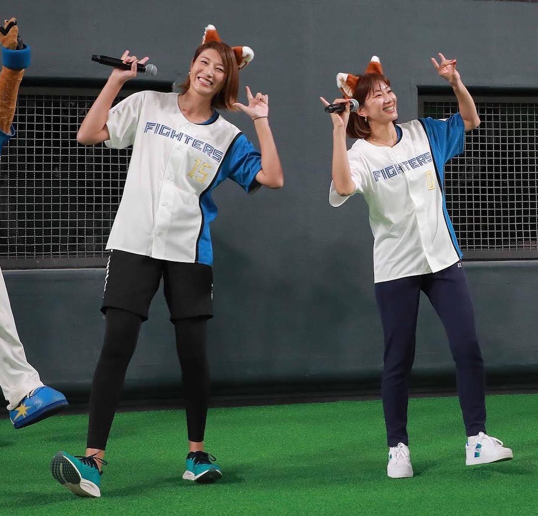 🦊潮田玲子さんと狩野舞子さんがきつねダンスに挑戦❗️始球式ではノーバン投球も披露⚾️ | 話題の投稿