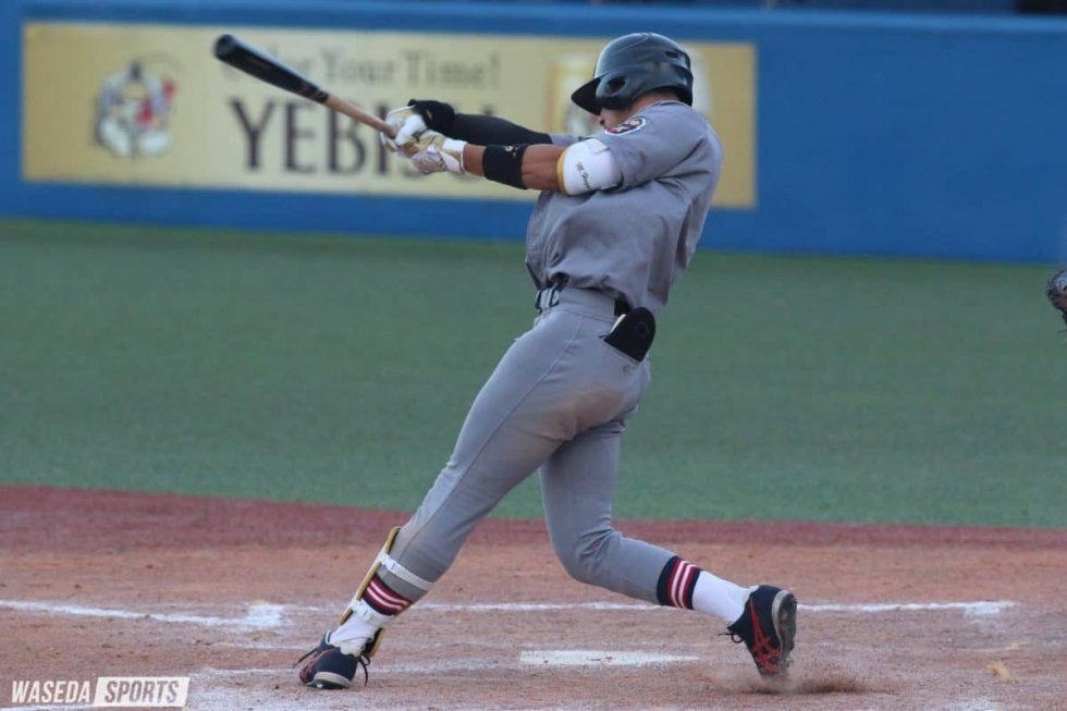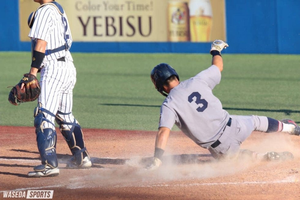5回には3番・広瀬隆太(3年)が右前安打で出塁。続く萩尾の遊ゴロで二塁送球が逸れ、1死一、二塁の好機を作る。ここで迎えたのはこの試合ここまで無安打の山本。2球目を振り抜いた山本の打球はフェンス直撃の二塁打に。広瀬が生還し、慶大はこの回、貴重な追加点を獲得した。