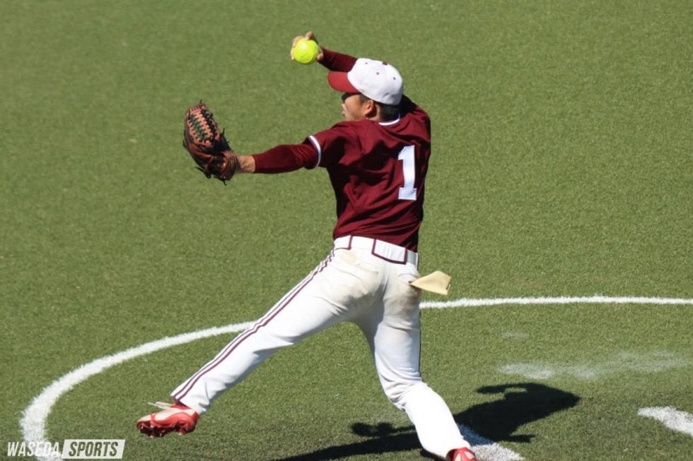 先週土曜日に行われた開幕戦を落とした早大。荒天により2戦が中止となり、中7日で仕切り直しの一戦となる今回の国士館大戦に臨んだ。4回まで投げた先発の佐藤慶弥副将(スポ3=静岡・飛龍)は3回に浴びた本塁打による1点に抑え、救援の稲垣拓朗(スポ2=群馬・新島学園)も無失点でつなぐ。しかし、打線が相手投手の前に沈黙。投手陣の好投に応えられず、リーグ戦2連敗となった。