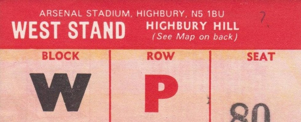 1972年のアーセナル対マンチェスター・シティの入場券 提供/後藤健生