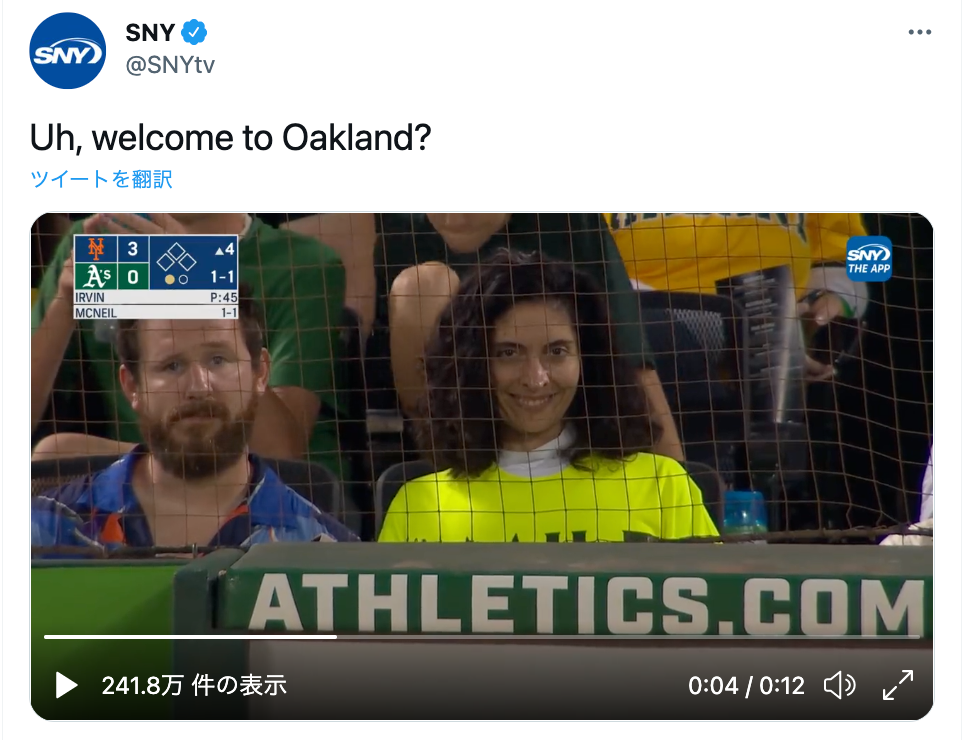 米ニューヨーク州地元局「スポーツネット・ニューヨーク」公式が23日(日本時間24日)、自身のツイッターを更新。不気味な動…