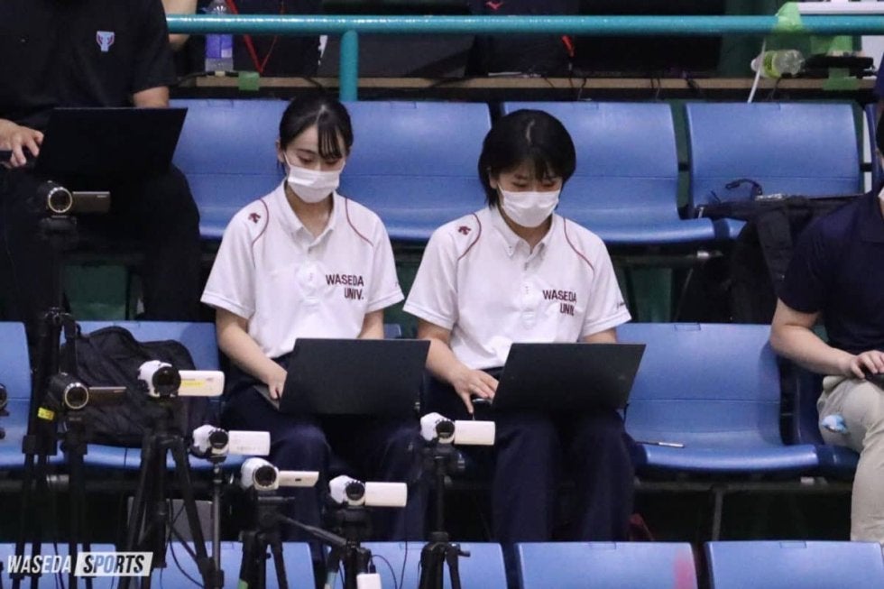 小室 まず大前提として早稲田の試合のデータ入力があります。今は基本的に私が入力しているのですが、現地(コート)と通信を繋いでいて、私が打ったデータをリアルタイムで監督や選手が確認できるようにしています。早稲田の試合が終わったら、打ったデータを元にして資料を作って、選手たちがその日の試合を客観的に数値として振り返られるようにしています。あとはスパイク映像を編集することもできるので、選手個人の映像集のようなものを作って、選手が(試合の)振り返りできるように映像を送っています。早稲田の試合に関してはデータの入力、資料作成、映像抽出ということをやっていますね。その他の試合に関しては、リーグ戦期間は全試合のデータを取ります。最終的には全大学の全試合のトータルのデータを出しているので、そのために全試合のデータを取っています。リーグ戦だと毎週試合があるので、翌週の対戦相手について毎週ミーティングを行っていて、そのミーティングに向けた資料の作成や映像の準備を1週間行っています。