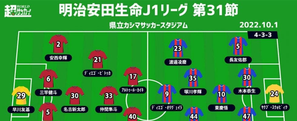 【明治安田生命J1リーグ第31節】 2022年10月1日(土) 15:00キックオフ 鹿島アントラーズ(5位/47pt)…