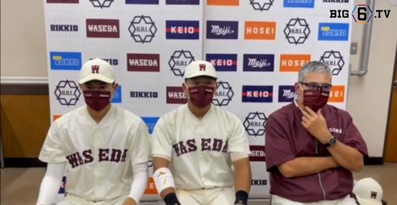 【ヒーローインタビュー】 早稲田大学 小宮山悟監督・ 加藤孝太郎(③下妻一)・ 蛭間拓哉(④浦和学院) | 東京六大学野球