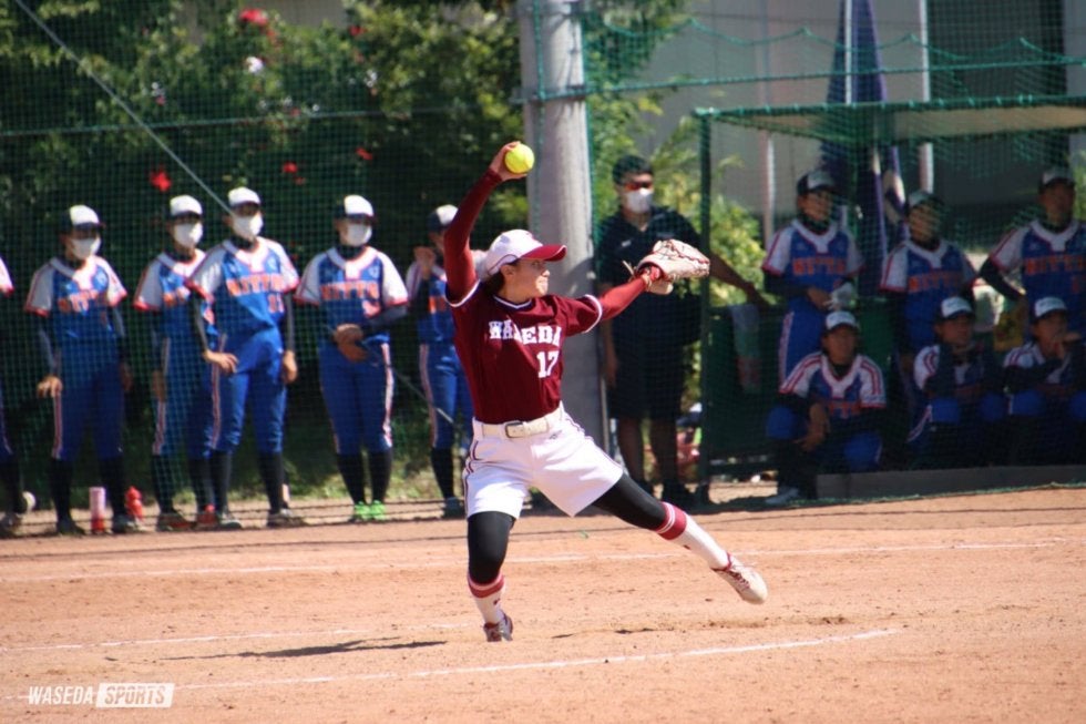 早大の東京都大学連盟秋季リーグ戦(秋季リーグ戦)が幕を開けた。この日、早大は東京富士大、日体大と対戦。打線が先制点をもぎ取ると、新宮怜美副将(スポ3=京都西山)が2試合連続の完封で、連勝を収めた。