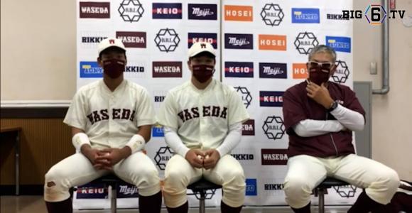 【ヒーローインタビュー】早稲田大学 小宮山悟監督・中川卓也(④大阪桐蔭)・熊田任洋(③東邦) | 東京六大学野球
