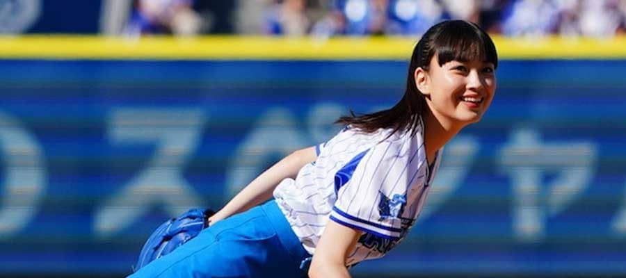 スカートひらり… 女優・大政絢さんが豪快投球でファン魅了「可愛すぎて」