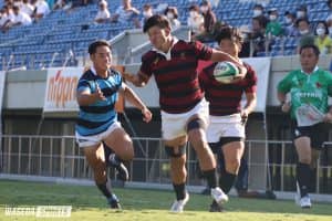 前半5分、敵陣左5メートルでの早大ボールラインアウトからモールで押し込み、抜け出した佐藤がインゴールを駆け抜けた。続く10分には、敵陣右22メートル付近のラックからつながれたボールを左タッチライン際で受けたCTB松下怜央(スポ4=神奈川・関東学院六浦)が、相手を背中でいなし、トライ。その後は、ノックオンなどハンドリングの部分で課題を残しつつも、自陣22メートル以内にほぼ攻め込まれることなく、トライを重ねる早大。終了間際には先制トライと同様に、佐藤がモールから相手を押し切ってトライを挙げ、31-0でハーフタイムとなった。