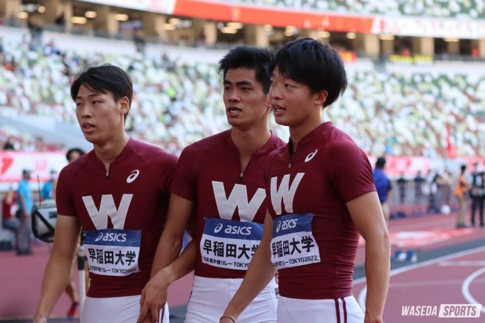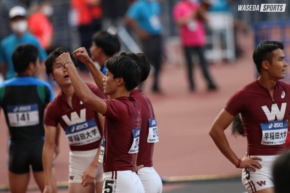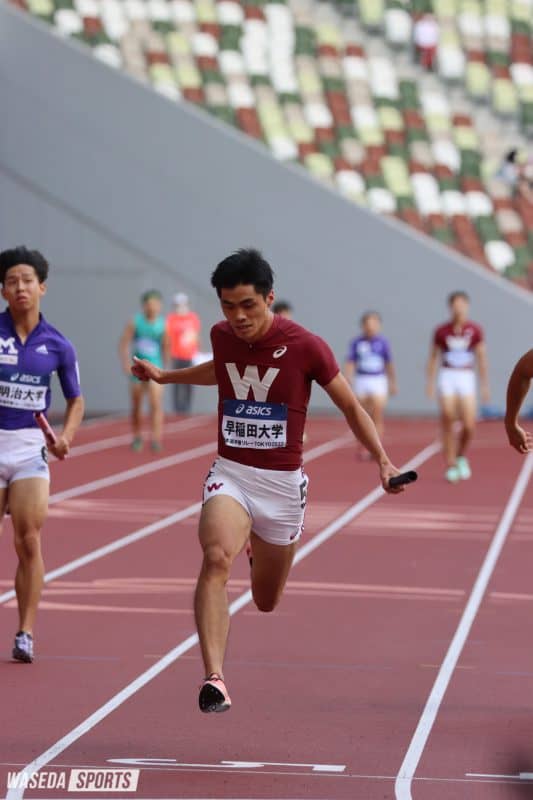 4継では、今まで早大のリレーの中核を担ってきた4年生、澤大地(スポ4=滋賀・草津東)はエントリー外。日本学生対校選手権(全カレ)からメンバーを変え、1走から三浦励央奈主将(スポ4=神奈川・法政二)、稲毛碧(スポ3=新潟・東京学館新潟)、池淵秀(法3=京都・洛南)、西裕大(教3=埼玉・栄東)のオーダーで予選・決勝ともに出場し、頂点を目指した。予選では、三浦と稲毛がリードを作り、その勢いに乗って、池淵、西も落ち着いた走りを見せ、余裕をもって1着でゴール。39秒09という全体1位のタイムで決勝へ進んだ。