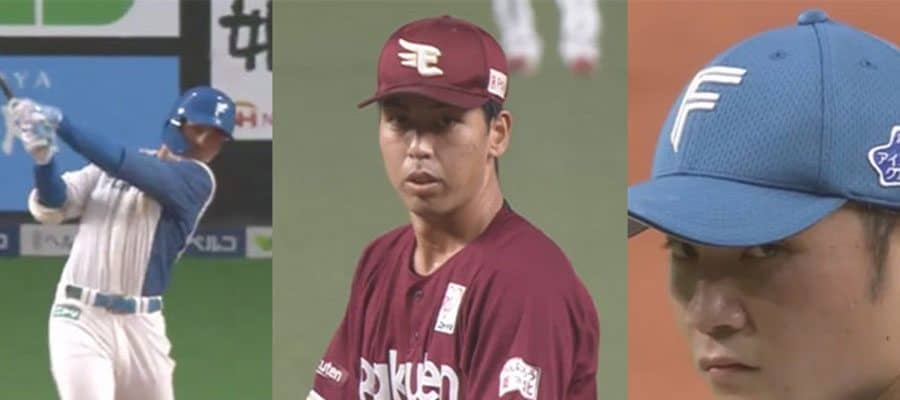 日本ハム・清宮幸太郎、楽天・宮森智志、日本ハム・伊藤大海【画像:パーソル パ・リーグTV】